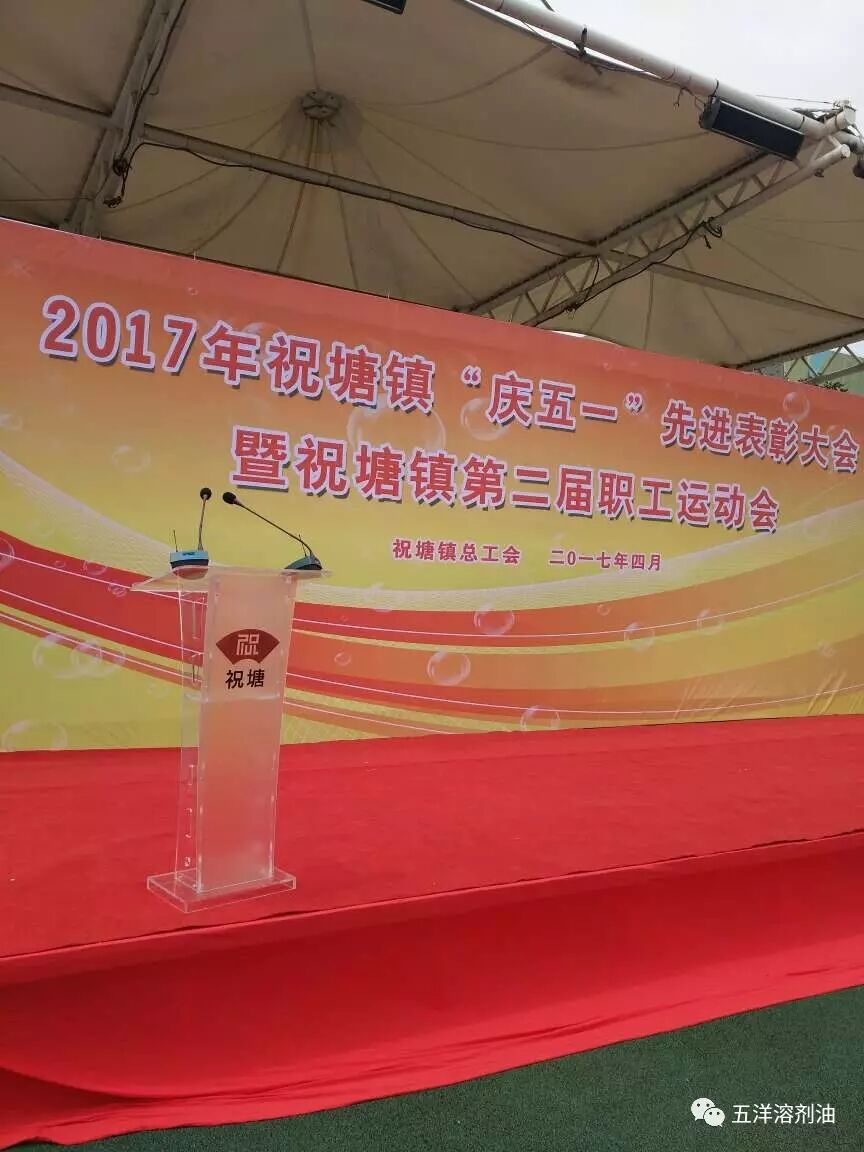 五一小长假来啦!为庆祝第127个“五一”国际劳动节,4月25日下午,我镇在祝塘中心小学体育场举行了“庆五一”先进表彰大会和祝塘镇第二届职工运动会。我司肖玉峰主管代表五洋化工参加了此次大会。